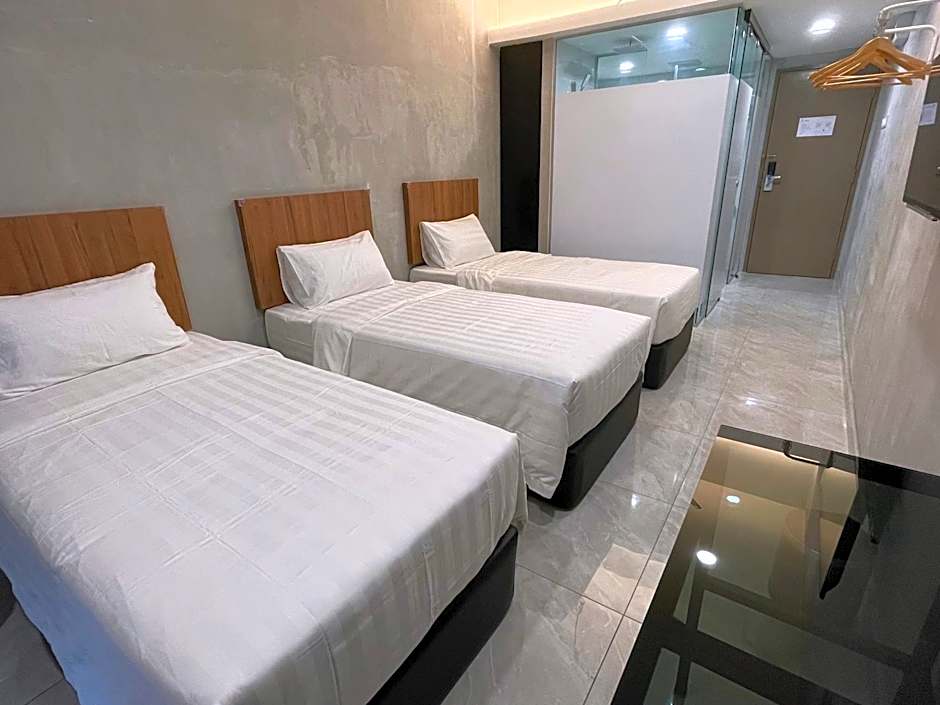 This air-conditioned triple room includes a flat-screen TV with streaming services, a private bathroom as well as a balcony with a quiet street view.